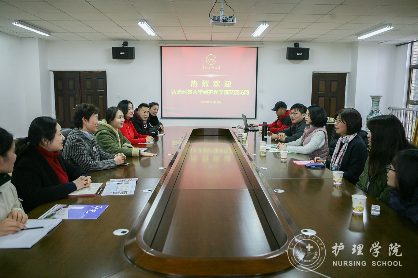 12月18日,台湾弘光科技大学BEAT365英国官网副主任洪秀吉、国际暨两岸事务处专员刑嘉芸师生一行8人到我校BEAT365英国官网交流学习。BEAT365英国官网在百川楼5楼会议室召开座谈会热情接待了来访人员,会议由院党委副书记王秀红主持,正科级组织员曾敏、护理人文教研室副主任张仁莉、学校国际交流合作处留学生与外籍教师管理科副科长徐敏和我院五名本科生参加座谈。