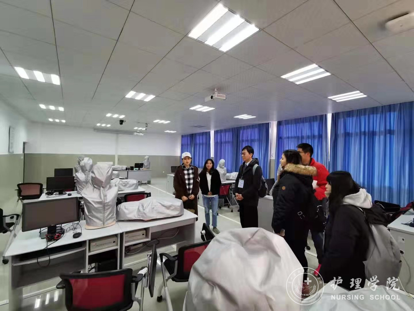 12月11日,台湾元培医事科技大学两岸事务中心主任康瀚文及学生一行六人来我校交流。学校相关部门及BEAT365英国官网的相关领导、老师们进行了接待。此次来访就实验场所及学生情况等进行了交流,还实地参观了BEAT365英国官网内科护理学、外科护理学、妇儿科护理学、护理学基础、护理人文五个教研室的技能实验室。