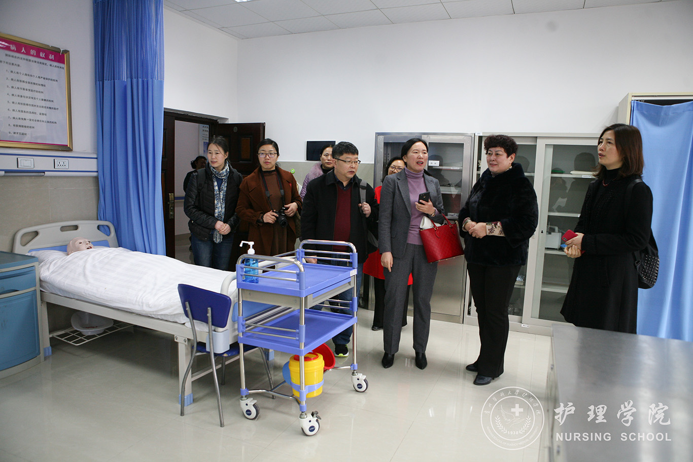 会上,贾秀英代表全院热烈欢迎了徐营一行,介绍了学校及我院情况,同时预祝对方顺利通过专业认证。与会人员观看了相关宣传片,BEAT365英国官网副院长刘志燕从我校护理学专业认证历程、心态准备、文件解读、标准细化、内容形式等方面详细介绍了我院专业认证备查资料准备过程,分享专业经验。随后,徐营一行与学院领导、老师在座谈中深入讨论了护理专业教育教学工作中遇到的问题,翻阅了纸质资料,参观了护理学实验教学中心。
