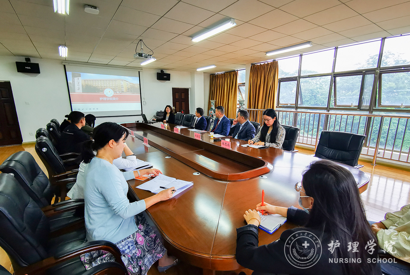 随后,葛继飞、化红雨分别介绍了各自学校的概况,分享了其在办学理念、人才培养方向、院系设置、对外交流办学成果等方面的详细信息。与会人员一致认为两所高校和我院在护理学和助产学的培养内容、目标方向等方面有诸多相近之处,为未来展开合作奠定了良好的基础。
