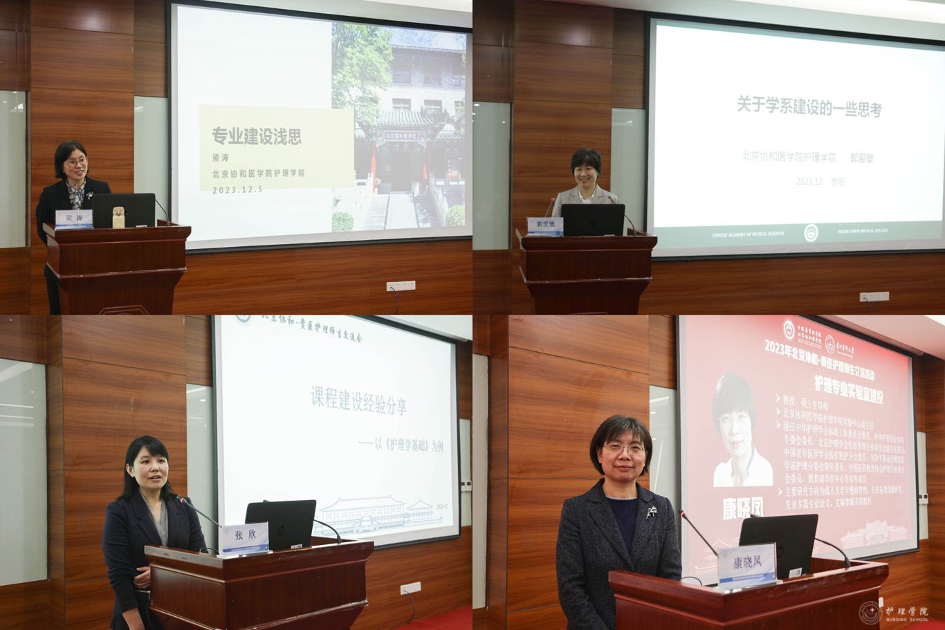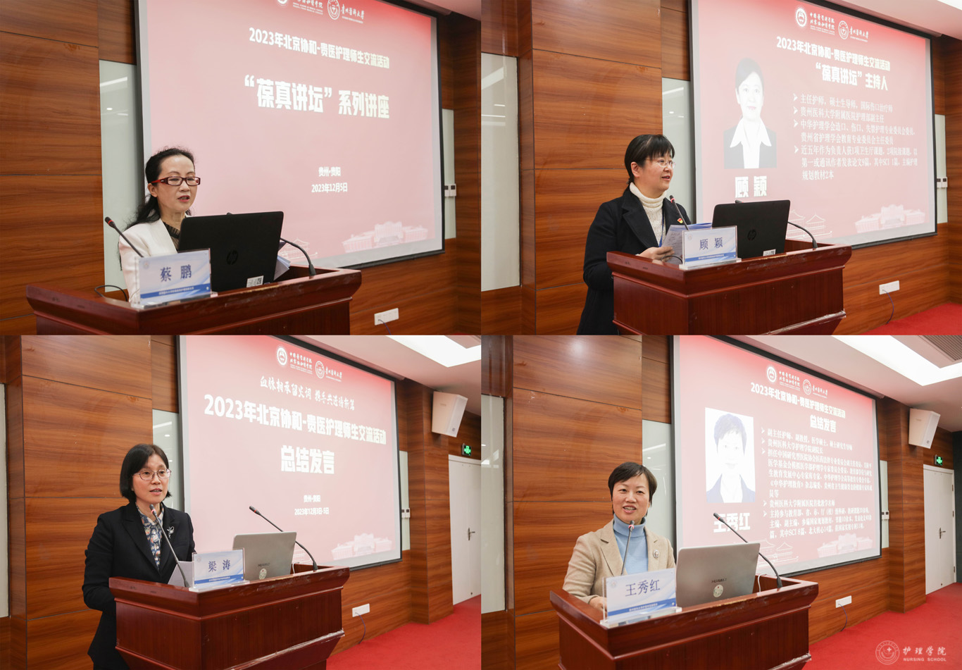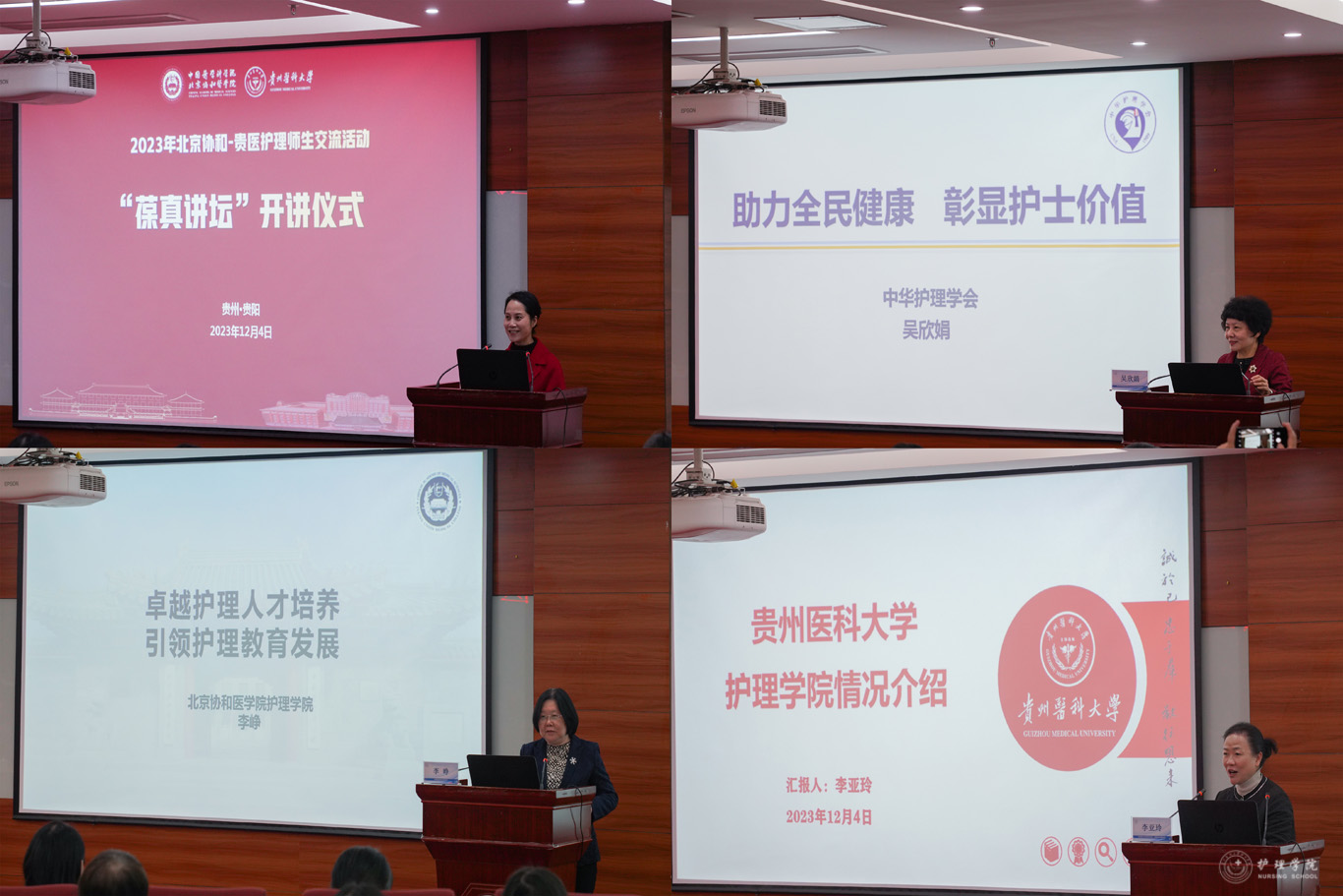 李峥回顾北京协和医学院护士前辈们在贵州的光辉岁月,介绍北京协和医学院护理的发展历程及北京协和医学院护理先贤楷模的不朽业绩,希望北京协和医学院与贵医护理人追寻先辈的足印,传承协和精神,时刻做到“勤、慎、警、护”,共同为人民健康服务。