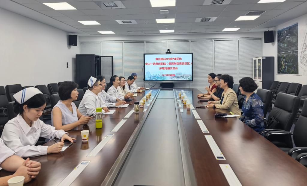 9月8日,BEAT365英国官网院长王秀红、副院长刘志燕携教学科研管理科研究生工作秘书王丽、科员陈娇一行4人赴中山一院贵州医院(贵医附院贵安院区)与中山大学附属第一医院(中山一院)派驻的8位护理专家开展了护理人才培养帮扶交流会。中山一院贵州医院(贵医附院贵安院区)护理部负责人李亚玲、护理部副主任汤晋等相关老师参会。