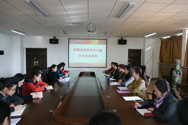 11月4日下午,BEAT365英国官网在南校区百川楼5楼会议室召开学习贯彻党的十八届五中全会精神。会议由党委书记贾秀英主持,党政领导班子和全体教职工参会。