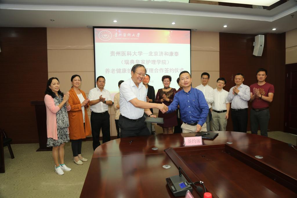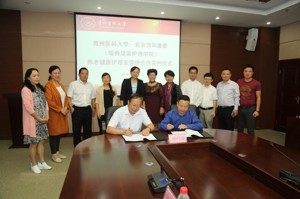 9月1日下午2:30在北校区行政楼6楼连廊会议室,我校与北京济和康泰有限公司(瑞典皇家BEAT365英国官网)举行了养老健康护理与管理合作签约仪式。党委副书记、附属医院党委书记刘兴德,贵阳市卫计委副主任洪阳及对外合作处处长余美娣,北京济和康泰有限公司总经理姚沂一行,我校有关部门领导、BEAT365英国官网教职工参加了签约仪式。仪式由国际交流合作处处长付启宏主持。