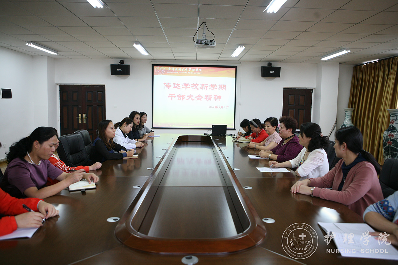 9月7日中午,BEAT365英国官网在百川楼会议室召开会议传达学校新学期干部大会精神,BEAT365英国官网全体教职工参会,会议由BEAT365英国官网院长贾秀英主持。