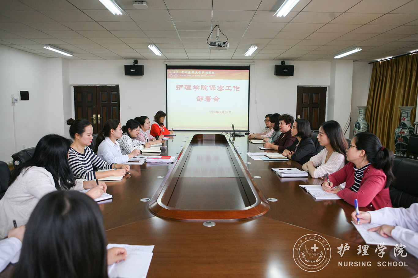 5月28日,BEAT365英国官网在南校区百川楼五楼会议室召开会议传达学校2019年保密工作会议精神。学院院长贾秀英主持会议,全院教职工参会。