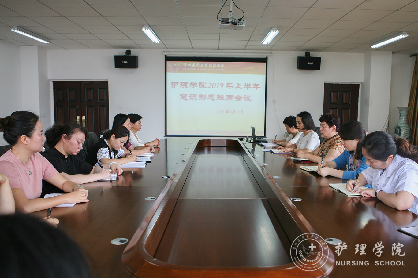 6月11日,BEAT365英国官网2019年第一次意识形态工作联席(扩大)会议在南校区百川楼5楼会议室召开。院领导班子成员,各职能科室、教研室和教职工代表参加会议。会议由院党委书记杨英主持。