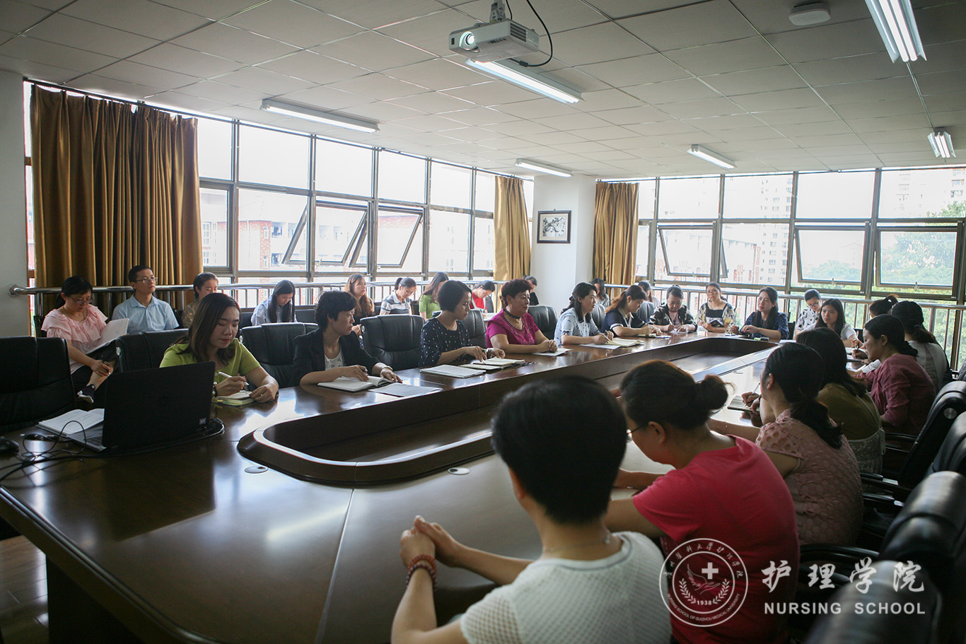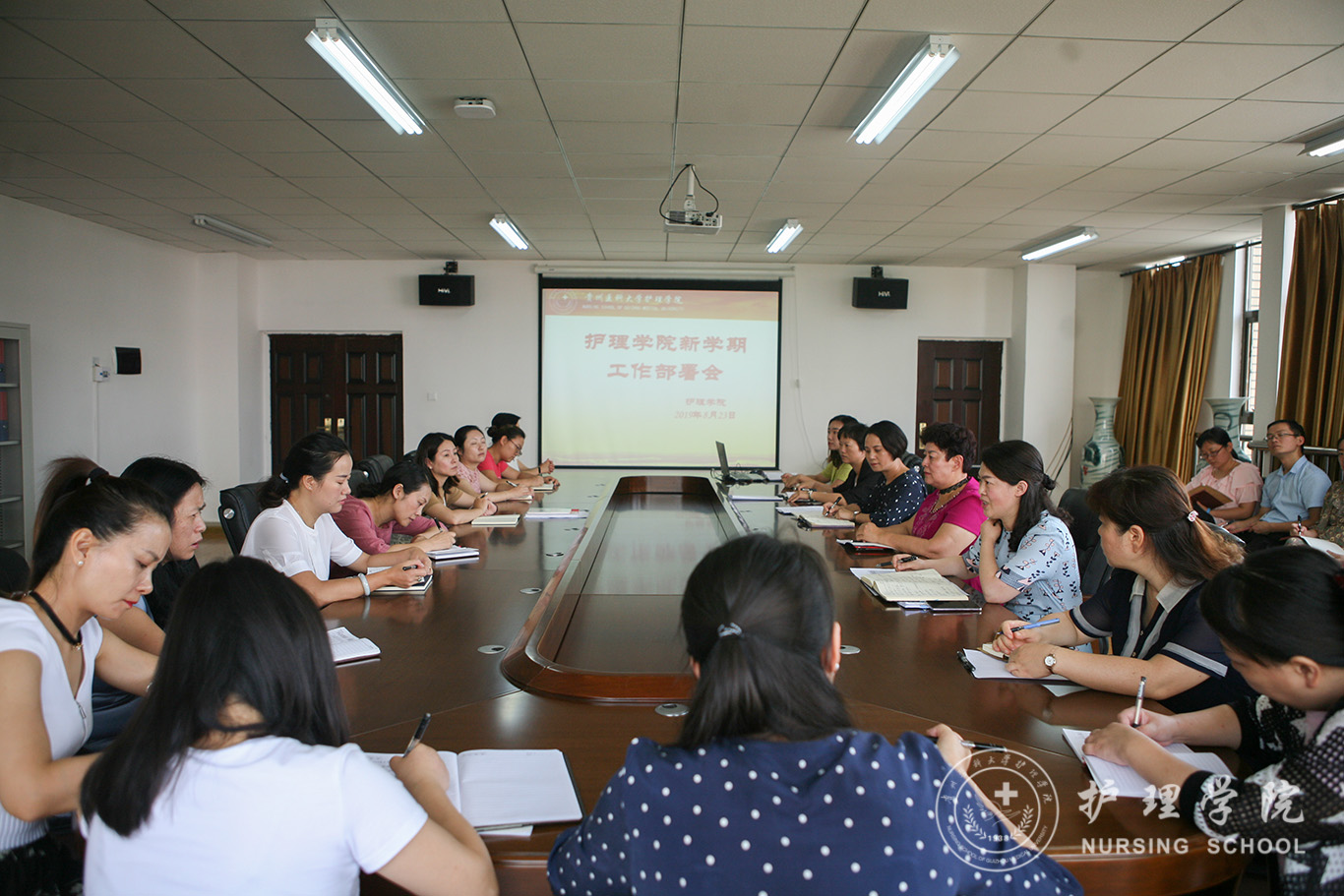副院长刘志燕通报了假期我院组队参加全国教师护理技能比赛的成绩,对教学工作做了部署,对教研室主任的新学期工作提出了新的要求。