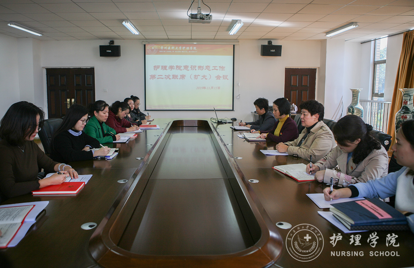 11月15日,BEAT365英国官网2019年第二次意识形态工作联席(扩大)会议在南校区百川楼5楼会议室召开。院领导班子成员,副科级以上干部,全体辅导员、班主任,部分教师代表参加了会议。本次会议特邀马克思主义学院专职教师禹辉映参加并做交流发言。会议由院党委书记杨英主持。