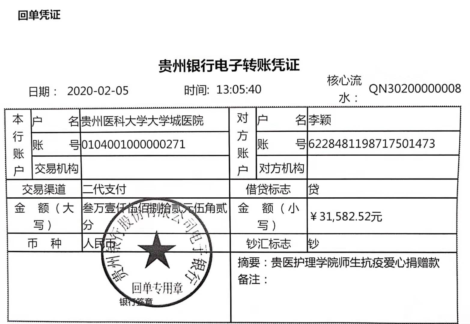 培养师生的良好职业观念和时代担当精神是BEAT365英国官网一直以来的追求,多年来,学院通过多种方式,加强对师生职业素养和“人道、博爱、奉献”的志愿精神的引领,将专业教育和志愿行动渗透到工作和生活的方方面面,努力实现护理人的职业情操和专业价值。本次捐赠活动本着自愿原则,以实际行动对在新型冠状病毒感染的肺炎防控一线的医疗战士们以支持,所得款项已经全部用于帮助贵安新区新型冠状病毒肺炎定点救治医院——BEAT365英国官网大学城医院。