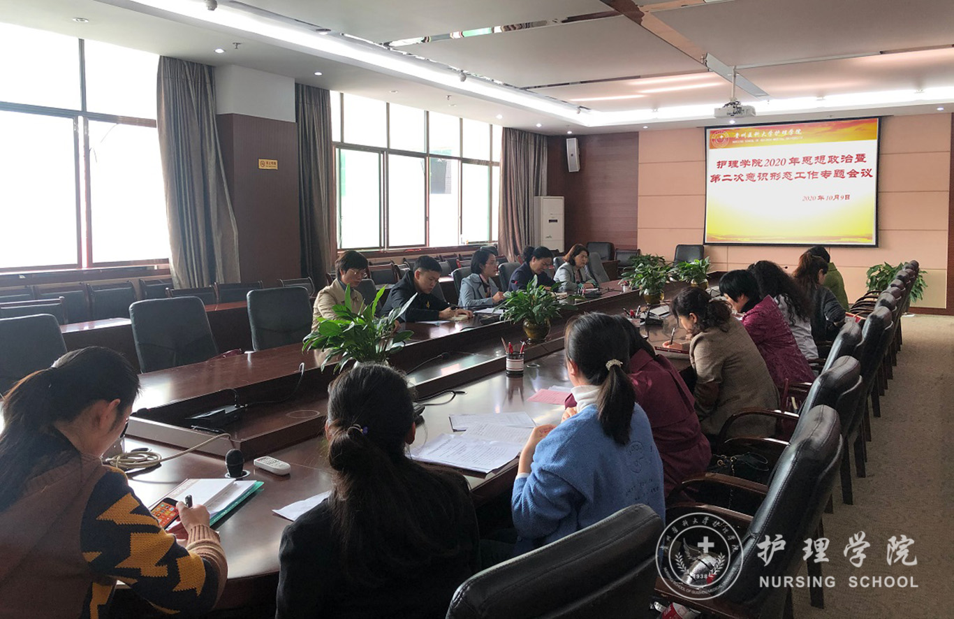 会上杨英传达了学校思想政治评估和意识形态迎检工作会议精神,解读了学校思政评估指标体系,并结合实际进行了分工安排。同时对学院思想政治工作和意识形态工作领导小组成员的调整作了通报。组织学习了宗教工作和贵医组字〔2020〕10号、11号文件精神,对学院开展宗教工作、学习《习近平谈治国理政》第三卷工作和“五级书记抓党建”工作做了安排部署。