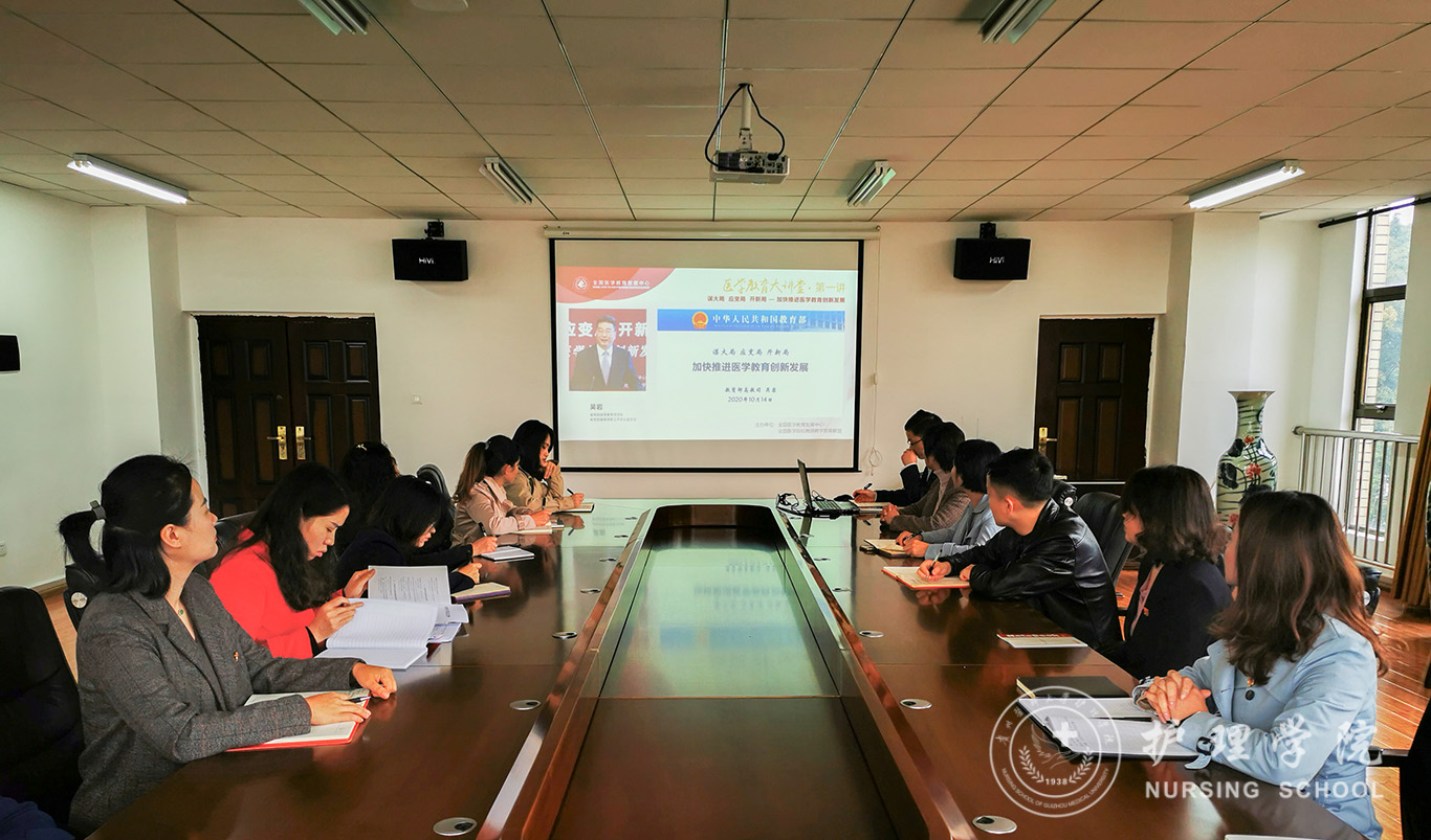 10月14日,BEAT365英国官网组织教师党员在百川楼五楼会议室集中收看“医学教育大讲堂”第一讲并开展了政治理论学习活动。BEAT365英国官网党委书记杨英、党委副书记何为、副院长刘志燕和王秀红及教职工党员参加了活动。活动由教职工党支部书记张仁莉主持。