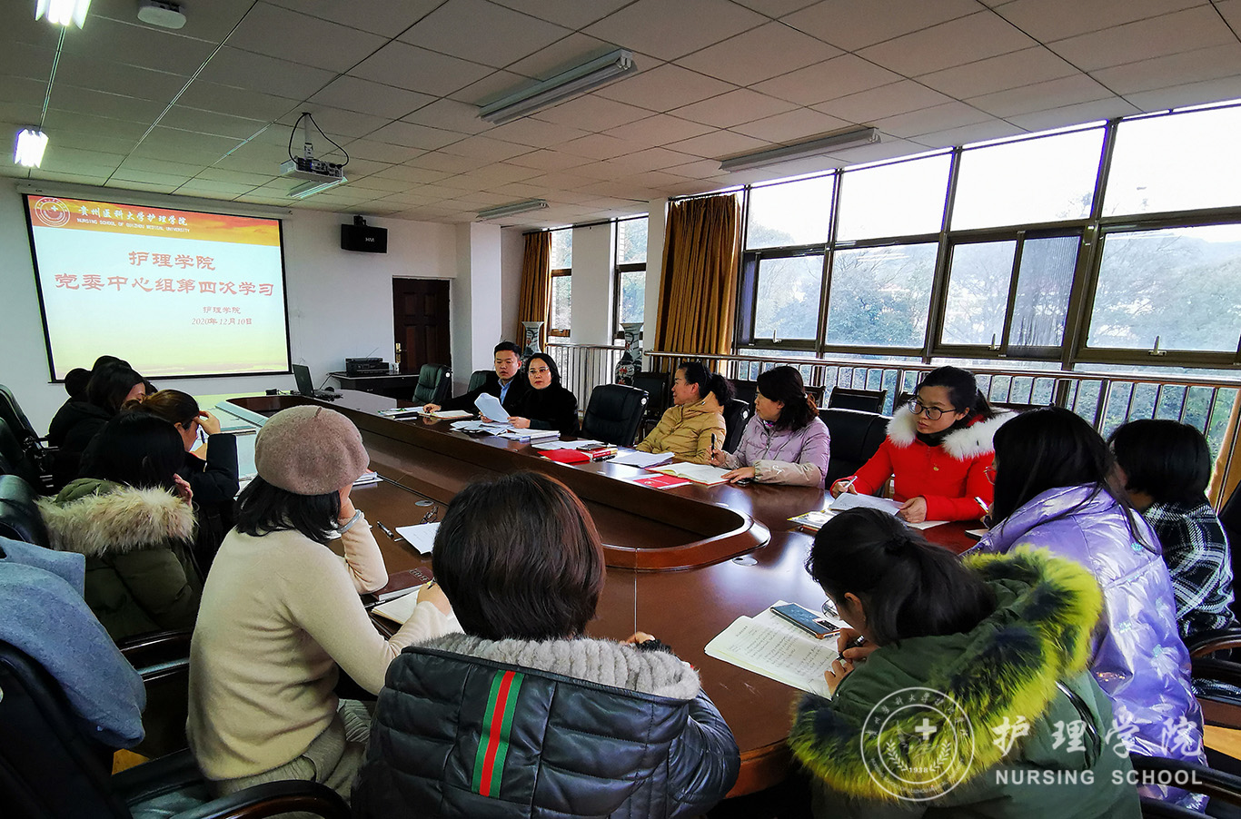 会上,杨英传达了学校2020年第二次意识形态工作联席(扩大)会议精神,组织学习了《普通高等学校院(系)党委会会议和党政联席会议议事规则示范文本》;院长李亚玲领学了《中共中央关于制定国民经济和社会发展第十四个五年规划和二〇三五年远景目标的建议》中“全面推进健康中国建设”部分;副书记何为领学了《深化“不忘初心、牢记使命”主题教育成果的意见》和《习近平关于“不忘初心、牢记使命”论述摘编》中“坚决整治形式主义、官僚主义,加强真抓实干的作风建设”部分;副院长刘志燕领学了《中国共产党纪律处分条例》《宗教事务条例》《BEAT365英国官网抵御和防范宗教渗透工作机制》。结合对党的十九届五中全会精神的学习体会,党委书记杨英作中心发言,其他院领导班子成员作交流发言,部分科以上干部作学习发言。