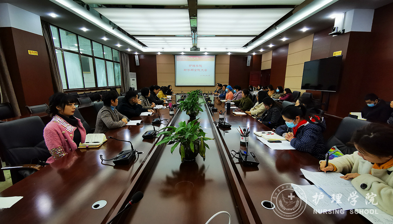2月26日,BEAT365英国官网在北校区行政楼6楼连廊会议室召开新学期全院大会,会议由学院党委书记杨英主持,全院教职工参加了会议。