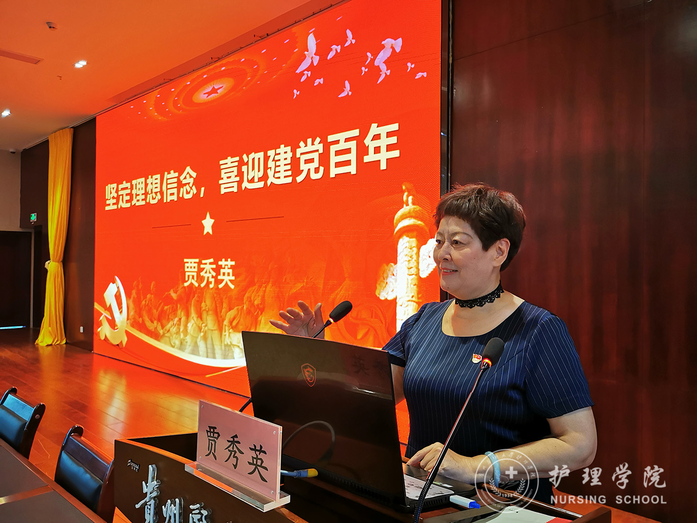 贾秀英老师给我们上了一堂精彩的党课,对青年学子寄予了殷切的期望,呼吁我们要用党的光荣传统和优良作风坚定信念、凝聚力量,自觉传承红色基因,树立远大理想,时刻牢记党和人民对我们的重托,用自己的故事为“百年贵医”谱写壮丽华章。