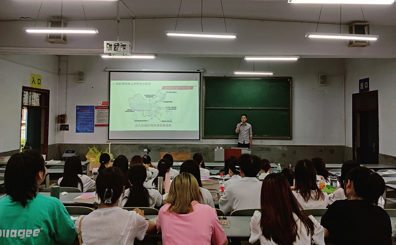 6月29日,BEAT365英国官网党委委员、副书记何为以《收官“十三五”实现新跨越》通过线上和线下相结合的方式为2017级毕业生党员上最后一堂党课。