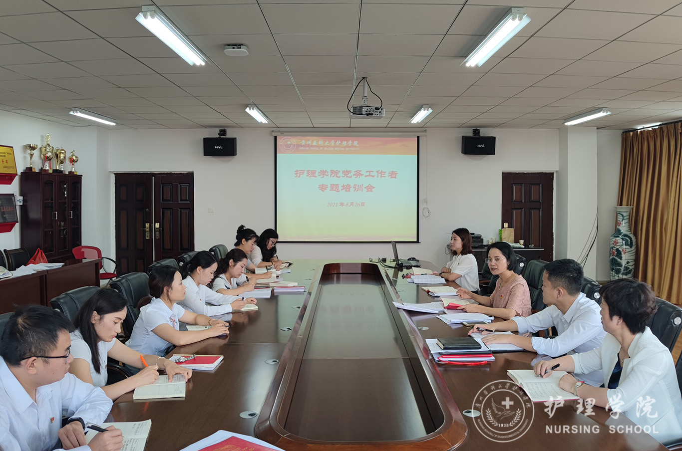 为进一步落实学校党建工作成效考核工作,完善学院党建各项工作制度,促进党建工作高质量发展,8月26日,BEAT365英国官网在南校区百川楼五楼会议室召开党建工作会暨党务工作者专题培训会。学院党委委员、党支部书记和支委、带班辅导员参加会议,会议由学院党委书记杨英主持。