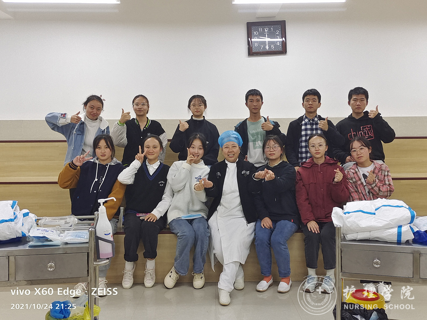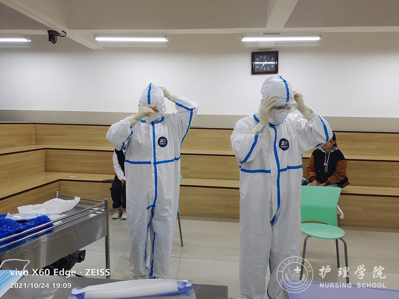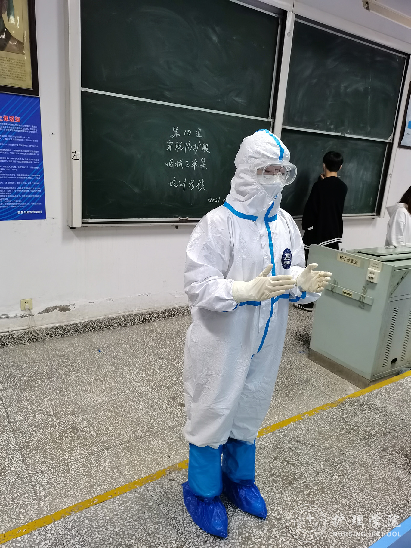 为抗疫工作的开展提供强有力的后续保障,10月23日、24日我院再次组织对助产学2019级全体学生、护理学2020级部分学生共计210名学生进行防疫相关技能培训及考核工作。23日晚特邀贵医附院耳鼻喉科主任龚正鹏教授通过腾讯会议线上开展《核酸检测-咽拭子、鼻试子的采集》的培训工作,同时组织学生线上学习穿脱防护服、护目镜戴脱、医用口罩戴脱、防护口罩戴脱、二级防护用品穿脱等防疫知识及技能。24日学院全体专业教师分组对学生逐一进行专项培训及考核,确保学生100%掌握各项防疫技能操作。