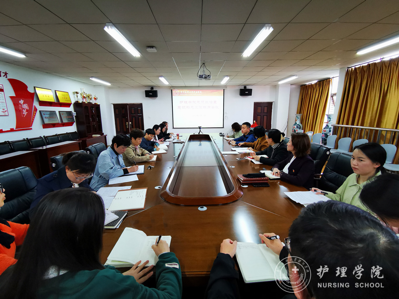 会上,传达学习了全国、全省教育工作会议精神,全国、全省宣传部长会议精神,学校2022年上半年意识形态工作联席(扩大)会议精神,集中收看了保密教育视频和《中国共产党统一战线工作条例》学习微视频。随后,班子成员对第一季度意识形态“一岗双责”制度落实情况进行了汇报;学院副科级以上干部、教研(实验)室主任对各自分管工作中意识形态领域存在的风险问题进行了分析研判,对学院近期及今后一个阶段思想政治工作和意识形态工作的重点进行了研究。