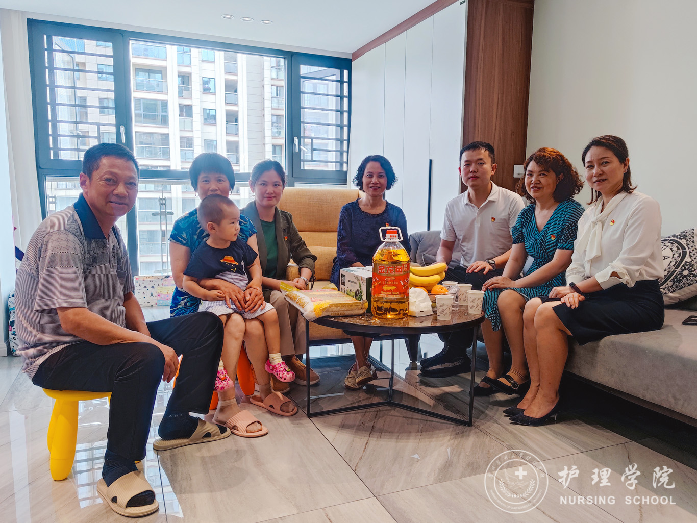 杨英一行同卢海霞及家属面对面拉家常,向家属介绍了学院的工作性质、工作要求以及干部本人的工作表现等情况,宣传廉洁自律等有关规定和要求。同时,对家属一直以来的关心、理解和支持,以及为教职工营造了和谐稳定的大后方表示衷心的感谢并送上了米油等慰问品。