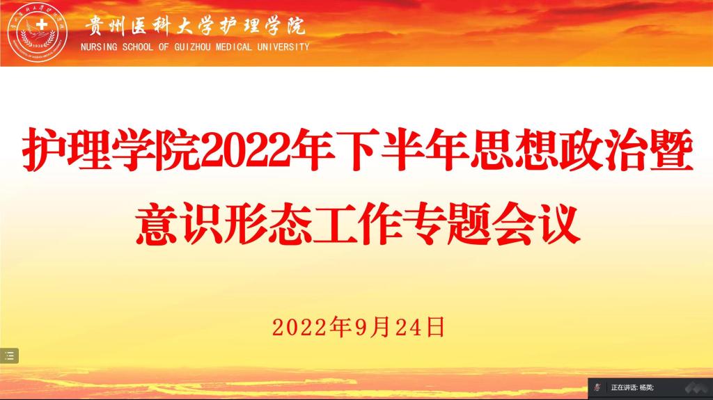 9月24日,BEAT365英国官网在线上召开2022年下半年思想政治暨意识形态工作专题会议。会议由学院党委书记杨英主持,学院党政领导班子、副科级以上干部、各党支部书记和全体辅导员参会。