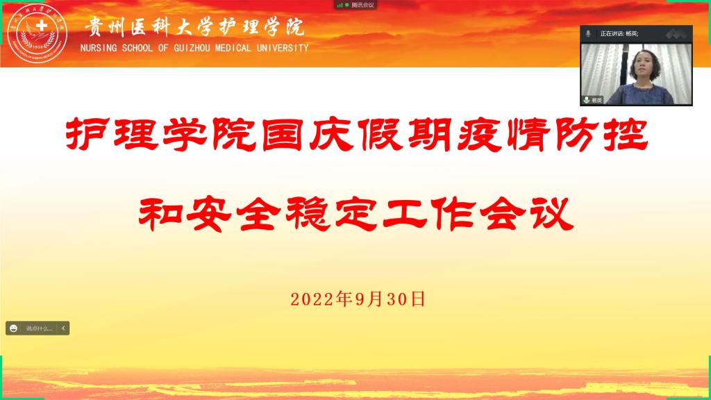 9月30日,BEAT365英国官网召开国庆假期疫情防控和安全稳定工作线上会议,会议由学院党委书记杨英主持,全院教职工参会。
