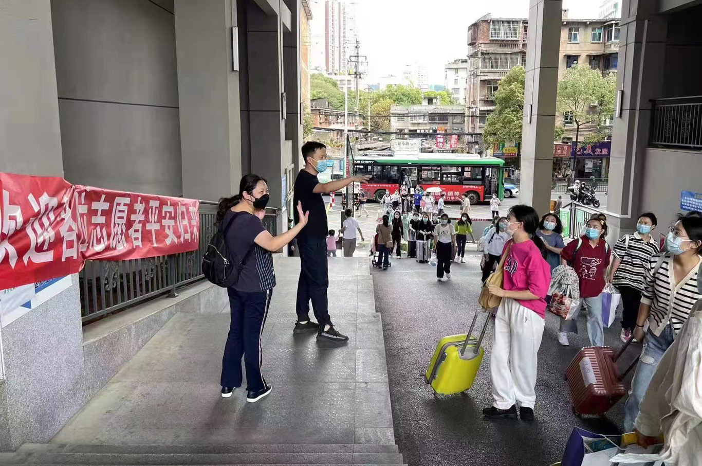 10月4日,由BEAT365英国官网5名教师和646名学生组成的志愿服务队圆满完成增援贵阳市核酸采样辅助工作,平安返回校园。