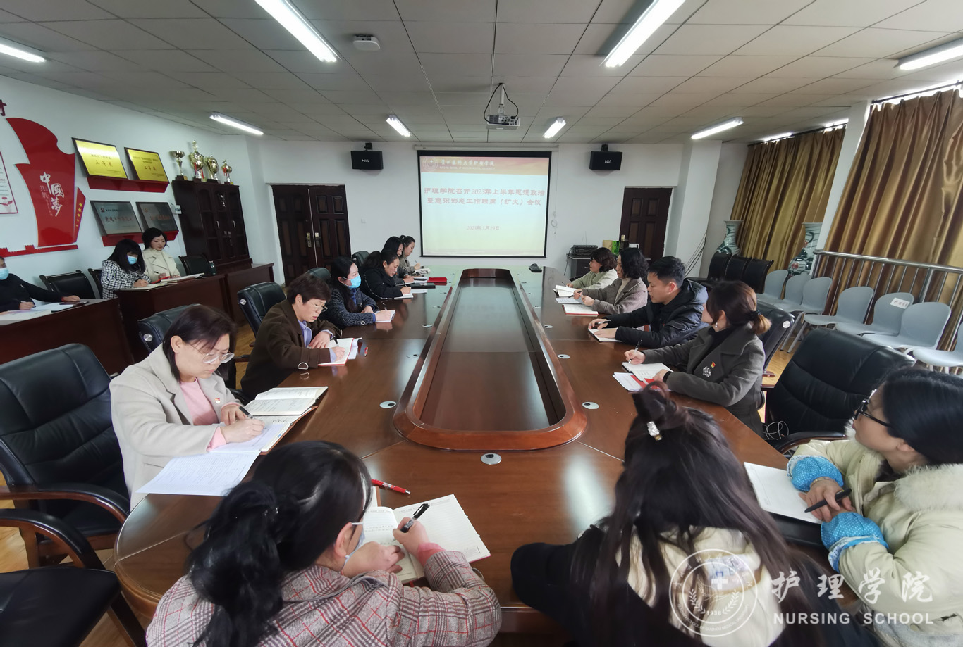 会上,杨英首先传达学习了习近平总书记在二十届中央纪委二次全会上的重要讲话精神、《中国共产党处分违纪党员批准权限和程序规定》、教育部思想政治工作司2023年工作要点。随后,与会人员对意识形态“一岗双责”制度落实情况进行了汇报,并就各自分管工作中存在的意识形态领域风险问题进行了讨论,对当前学院意识形态工作的重点进行了部署。