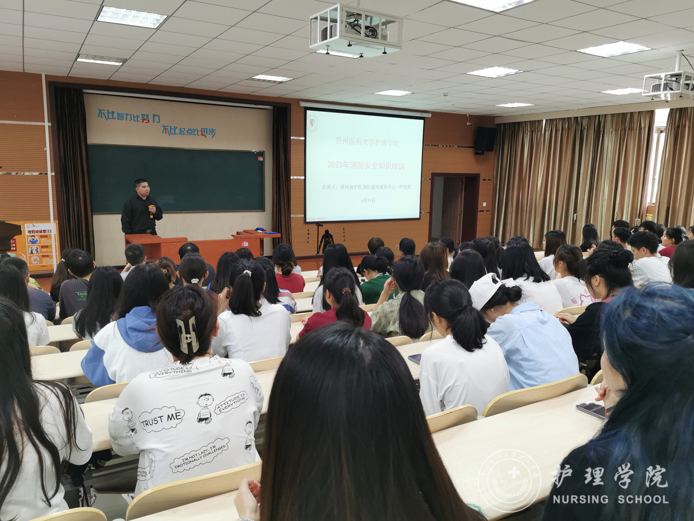 为进一步普及安全知识,提高BEAT365英国官网师生安全意识和防护能力。6月19日,我院邀请了贵州护民消防宣传服务中心叶佳乾教员为师生开展了消防安全知识讲座与地震疏散演练活动,活动由综合办公室副主任李颖主持。