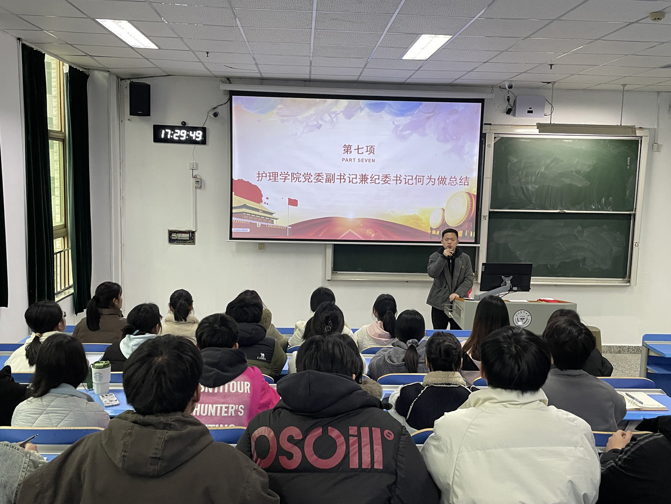 在教职工党支部组织生活会后,学院党委书记杨英以《守纪律讲规矩做新时代廉洁自律表率》为支部党员讲授了一堂廉政专题党课,要求全体党员时刻紧绷纪律这根弦,坚决维护党的纪律,做到心有所畏、言有所戒、行有所止,筑牢拒腐防变的思想防线,共同维护学校和学院风清气正的政治生态。