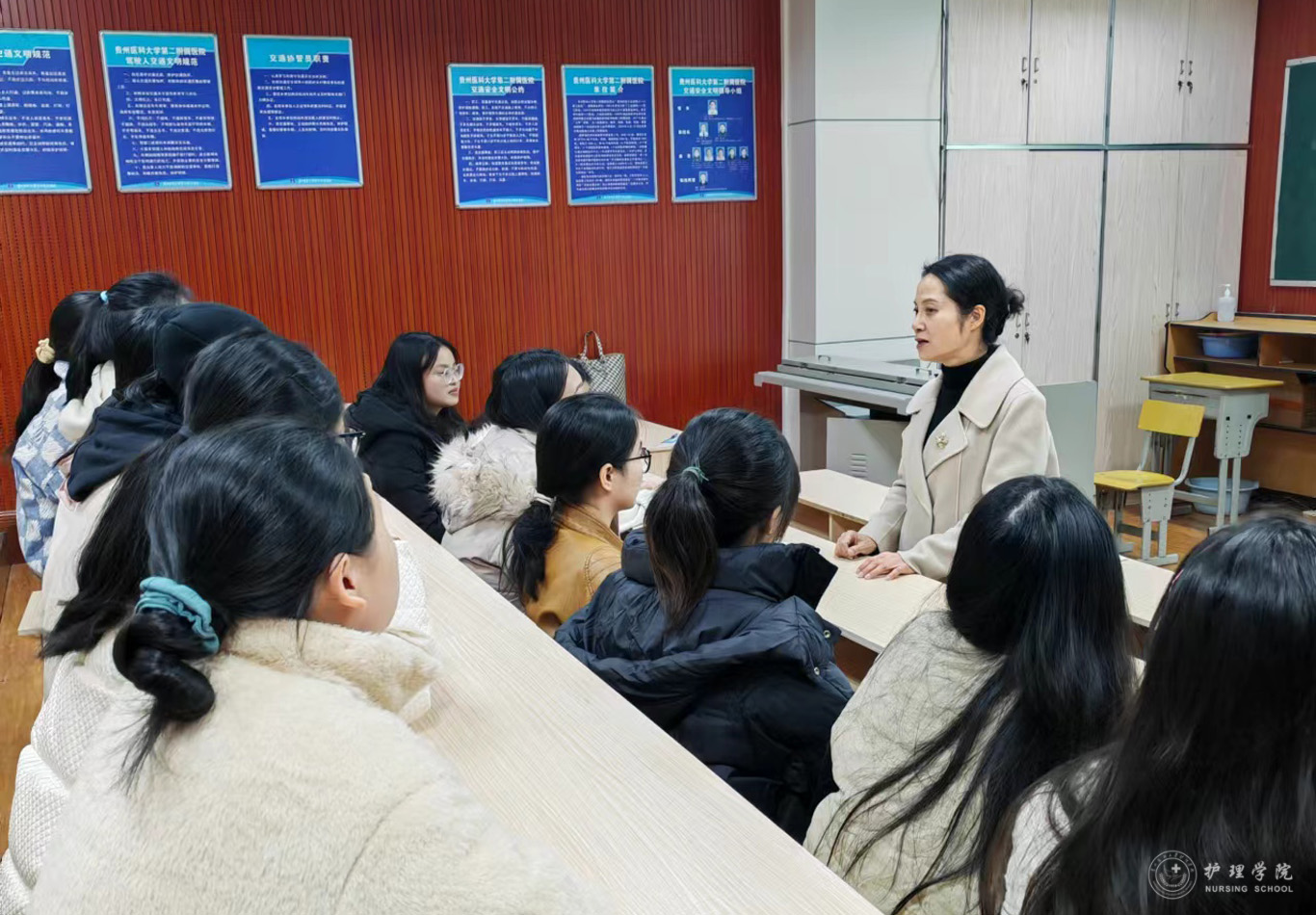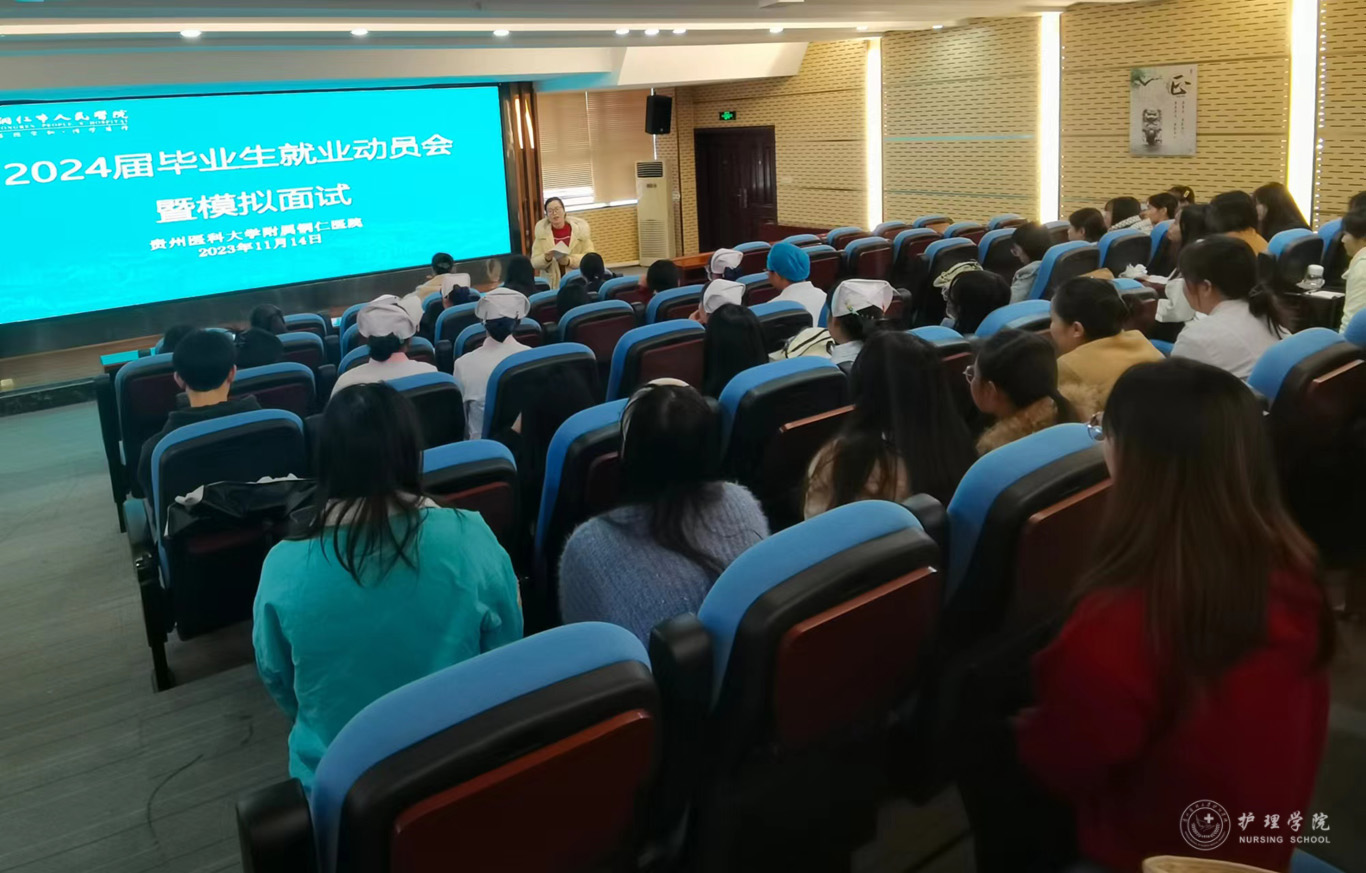 座谈会结束后,杨英在两家医院的校本部实习生和专升本学生中召开了毕业生就业动员暨模拟招聘会。会上,杨英和毕丽分别就同学们的现场表现做了点评,并围绕简历制作、面试礼仪和面试技巧等方面为大家做了全面的就业指导,引导同学们学会定位,树立正确就业观,主动出击,在平衡好实习和学习的同时,早日实现就业。