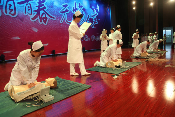 本次活动共分为2014级护生授帽、护理技能比赛、护理专业形象展示三个部分。在优美的音乐声中,2014级护生戴上了洁白的燕尾帽,并在BEAT365英国官网贾秀英书记的带领下宣读了护生誓词,手捧蜡烛高唱了护士之歌。授帽仪式之后,就是精彩紧张的护理技能比赛,主要考验的是选手对心肺复苏术操作流程的掌握情况,共16名选手分四组进行了激烈的角逐,选手们专业的态度,专注的神情,娴熟的操作赢得了阵阵掌声。活动最后部分,训练有素、仪态端庄、落落大方的同学向现场观众展示了护理人员标准优美的站、坐、蹲、走等姿态。BEAT365英国官网副院长刘志燕在赛后对选手表现进行了点评。