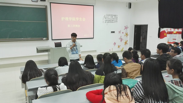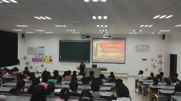 会议第一项,廖冰峰对前期学生会所开展的活动作出总结,并对大家取得的成绩给予表扬和肯定,同时也指出了不足之处,希望各部门予以改正。接着对即将开展的“一二·九”晚会等工作进行了安排。接着,由体育部的赵进同学带领大家学习以“马英九和习近平会面”为主题的团课知识,让大家在枯燥的学习生活中了解更多的热点时事新闻,同时也让大家知晓目前两岸关系的促进与合作。会议第三项,由文艺部的邓倩同学带领大家学习本次的团课内容:中共十八届五中全会会议精神,她以简洁明了的语言向大家阐述了团课的主要内容,并倡导大家应多关心国家、关心社会、树立正确的思想观念。至此,本次会议圆满结束。