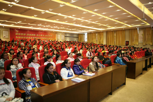 首先由2014级助产方向的姚瑶同学进行汇报,她结合自身专业特色,向大家展示了辅英科技大学在助产专业方面的独特教学方式。之后2013级的杨运荷同学用生动通俗的方式为大家讲述了她在辅英开设的特色课程中的参与过程以及得到的体会,鼓励在座同学抓住机遇,多去不同的环境,体验不同的文化,开阔眼界,不断成长。