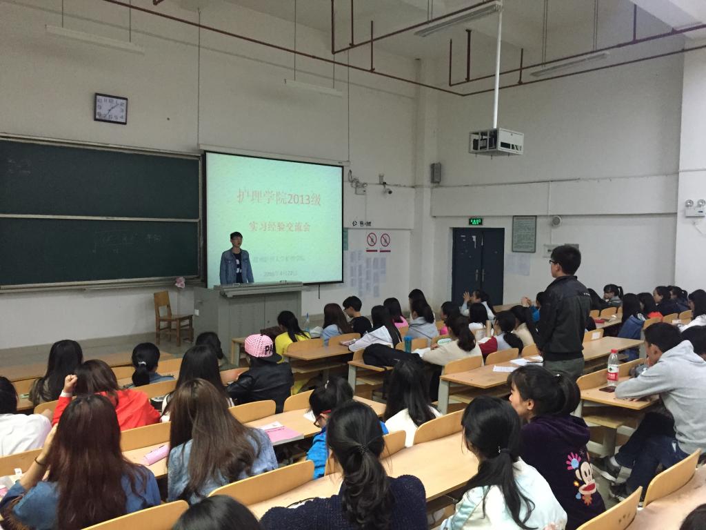4月22日中午12点20分,我院在北校区4101教室为即将进入实习的学生举行了一场实习经验交流会。会议邀请了2012级莫芸芸等8位同学作为分享人,辅导员王晓玲老师和2013级全体同学参加了此次会议。