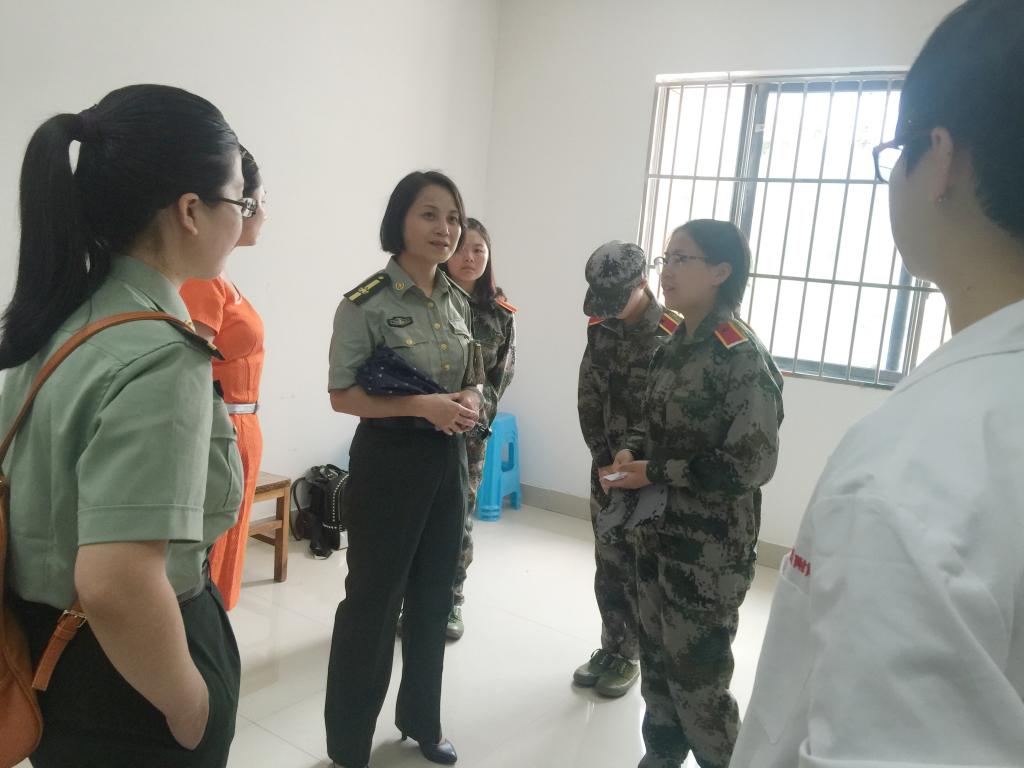 院党委副书记杨英一行首先看望了军训的教官们,向他们询问并了解学生们的军训状态和身体状况,对教官们连日来的辛勤付出表示感谢。受训新生们神采奕奕地接受了学院领导老师的检阅,他们一个个精神抖擞、身姿挺拔,展现出护院学子们的良好精神风貌。杨英副书记代表学院表达了对新生的关怀和殷切希望,她鼓励同学们要珍惜军训机会,刻苦锻炼,培养吃苦耐劳、坚持不懈的精神,学习军人的优良作风,圆满完成各项训练任务;其后,杨英副书记一行又来到军训医疗卫生队,关心慰问生病不能参训的新生,并建议身体状况允许的情况下尽量跟训,感受军训气氛,不给自己的大学生活留下遗憾。