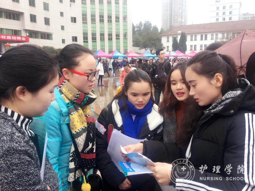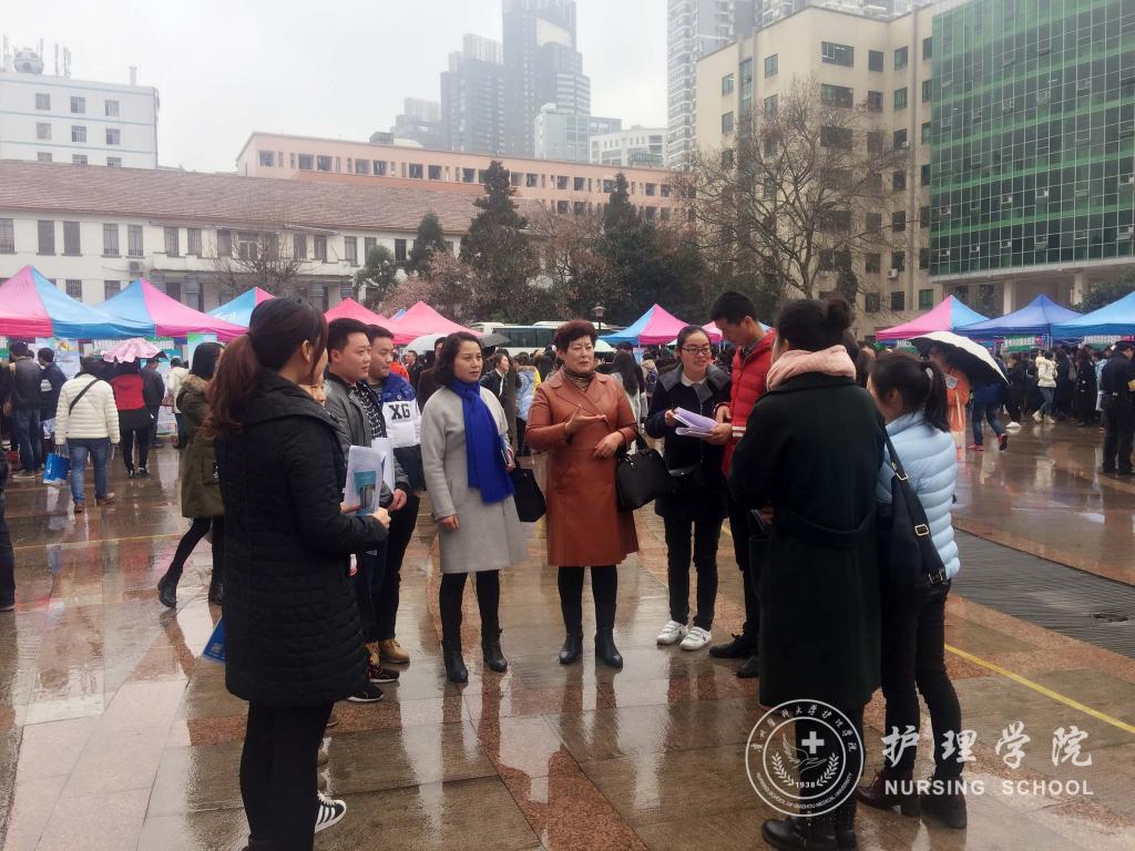 招聘会期间,贾秀英现场与护理岗位招聘单位交谈了解用人单位需求,鼓励学院毕业生把握“先就业、后择业”的原则,主动出击,做好应聘面试准备,力争顺利签约;杨英向毕业班辅导员详细了解了学院毕业生参加招聘会的情况,并要求定期开展毕业生就业情况的摸底统计工作,通过各种途径为就业困难学生提供就业指导和帮扶。毕业班辅导员现场办公,通过QQ群、微信群及时发布招聘单位信息,有针对性的动员学生投递简历,尽早找到理想的岗位。