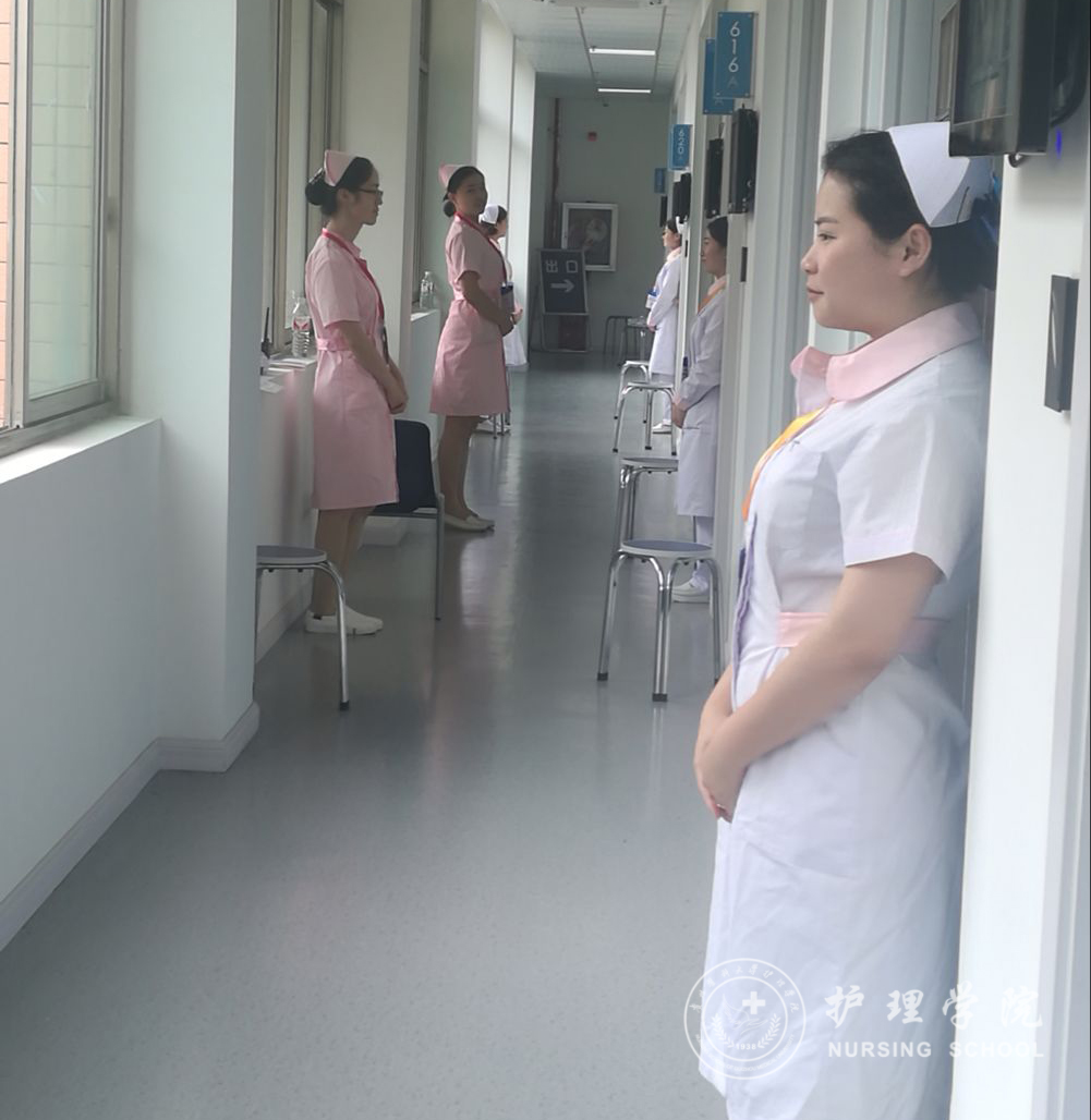 考试共分为六站式考核,我院志愿者分为引导员、志愿者、候补三个大组,配合临床老师完成考试前后的引导、整理准备考试用物、汇报、考生签退、协助考官对考生的评分进行计算等工作,保证了考试流程的正常进行。
