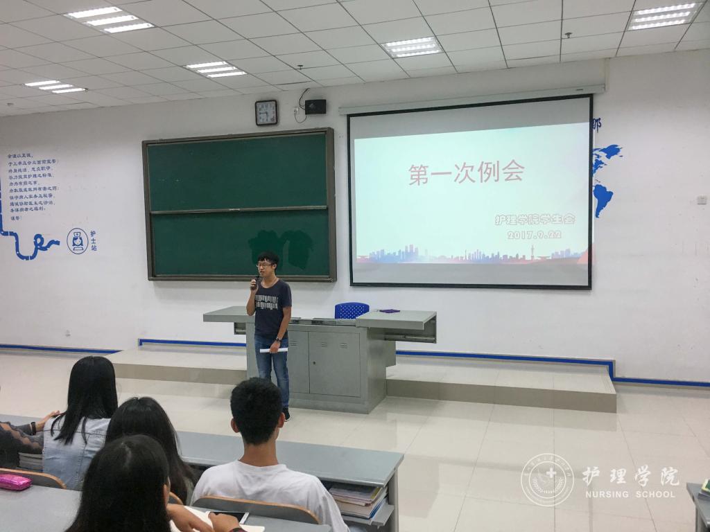 9月22日下午18:40,BEAT365英国官网学生会在南校区4403教室召开了本学期第一次例会。出席本次例会的有BEAT365英国官网分团委负责人王晓玲老师,本次例会由学生会副主席尹本渊主持。