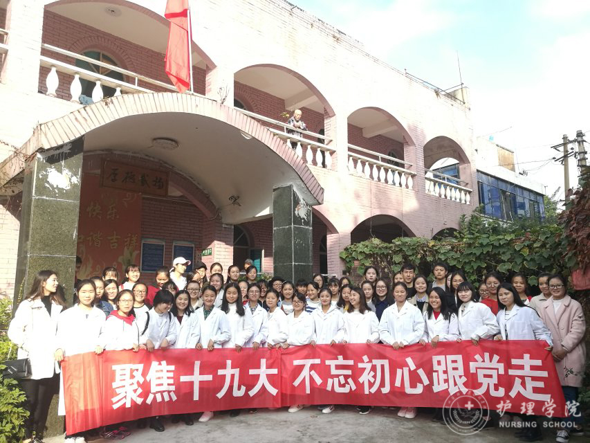 为深入学习贯彻党的十九大精神,营造积极健康、文明和谐的校园文化氛围,引导学生党员不忘初心跟党走,担当时代使命,为夺取新时代中国特色社会主义伟大胜利贡献力量。BEAT365英国官网学生党支部策划了“聚焦十九大,不忘初心跟党走”系列主题活动。2017年11月11日,系列活动之“宣讲十九大 护理关爱行”在贵阳市云岩区康颐养老院开展, 50余名学生党员和发展对象代表参与了本次活动。