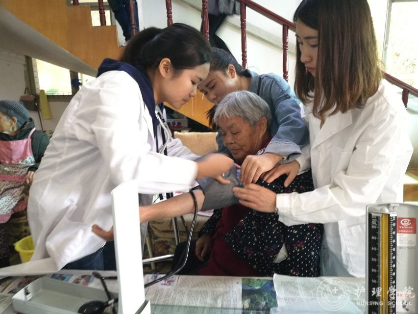 活动伊始,同学们在养老院工作人员的帮助下,为老人们送报读报,宣讲十九大精神。使老人们及时了解到十九大精神,掌握最新的惠民政策。让老人们感受到祖国发展的日新月异、感受到党给予的大家庭的温暖。随后,同学们利用自己所学,有针对性的对老年人常见病和生活饮食方面给予了健康指导,发放健康知识小贴士。为老人们进行了血压测量,对患有慢性疾病的老人反复叮嘱其需注意的健康事项、用药方法等。最后,同学们为老人们演出了精心准备的节目,与老人交流讨论,将带去的慰问品分发给老人,与老人们相处的其乐融融。