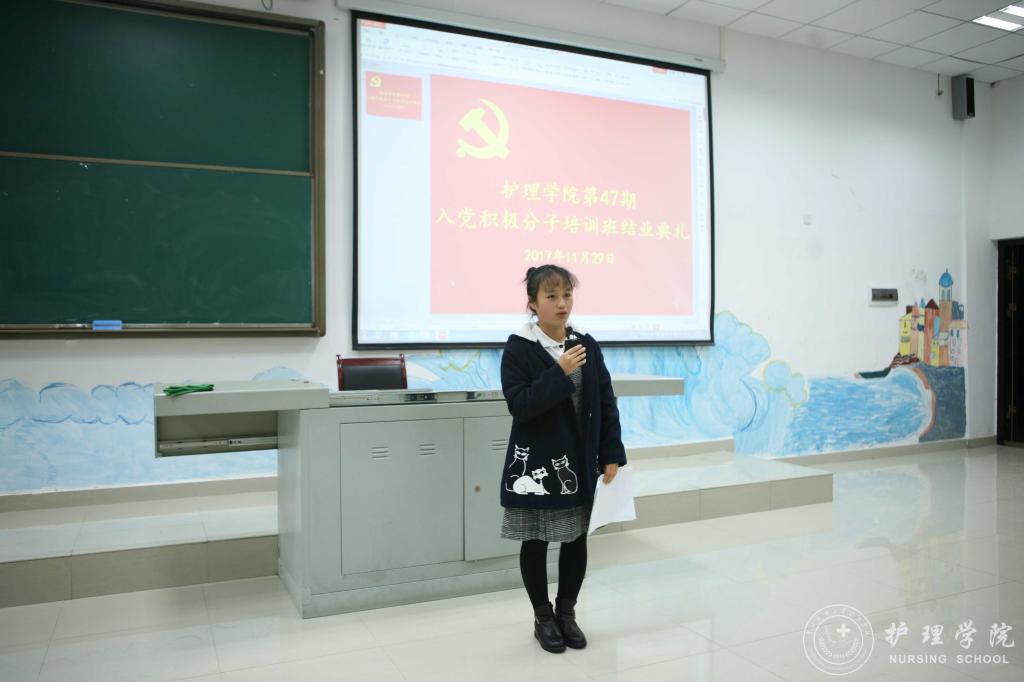大会开始,全体起立,奏唱《国际歌》。接着,BEAT365英国官网党委副书记杨英代表学院党委向顺利结业的全体学员表示热烈祝贺,向为本期培训班辛勤付出的老师们表示衷心的感谢!杨英指出,BEAT365英国官网党委高度重视本期培训班的各项工作,经过老师和同学们的共同努力,圆满地完成了预定的培训任务。这次培训班课程安排合理,内容丰富,办得非常成功,有以下几点是值得肯定的:一是培训内容丰富,主题突出。二是培训方式多样,亮点突出。三是培训时间集中,效果突出。同时,杨英就同学们如何在实践中巩固和扩大培训成果,不断成长进步,提了几点希望:一是希望同学们继续加强理论学习,提升政治理论素养。二是希望同学们进一步明确人生目标,坚定理想信念。三是希望同学们进一步端正入党动机,主动接受党组织的教育和考验。四是希望同学们坚持学以致用,以实际行动争取早日入党。紧接着,2016级护理学乙班的程娅同学代表优秀学员进行交流发言,分享了自己的学习收获,并代表本期入党积极分子对自己的思想、学习等方面提出了新的目标和更高的要求。最后,BEAT365英国官网学生党支部副书记马景瑶宣读了学院对14名优秀学员的表彰决定,BEAT365英国官网党委副书记杨英为优秀学员颁发了荣誉证书,并合影留念。