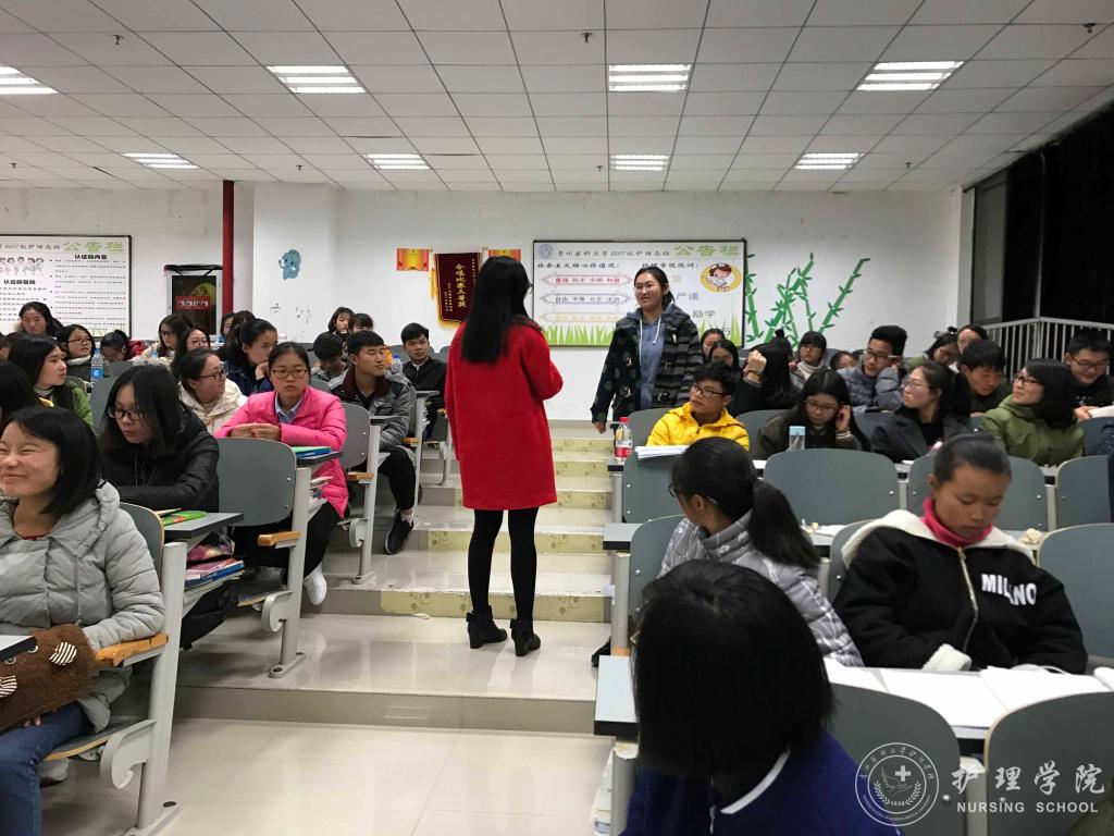 为进一步提高学生对护理学专业的认识,BEAT365英国官网于11月20日晚7点在南校区7402教室开展“不忘初心 砥砺前行”主题班会活动,班会由班长张小飞同学主持,班主任李宇老师主讲,2017级护理丙班全体同学参加。
