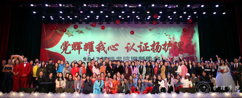 12月4日晚7点,BEAT365英国官网在南校区礼堂举办“党辉耀我心,认证扬护理”暨2017迎新晚会,出席晚会的嘉宾有学工部(学生处)副处长李宗梅、团委副书记桂晓玲、金晶和BEAT365英国官网全体师生以及各院系学生代表。