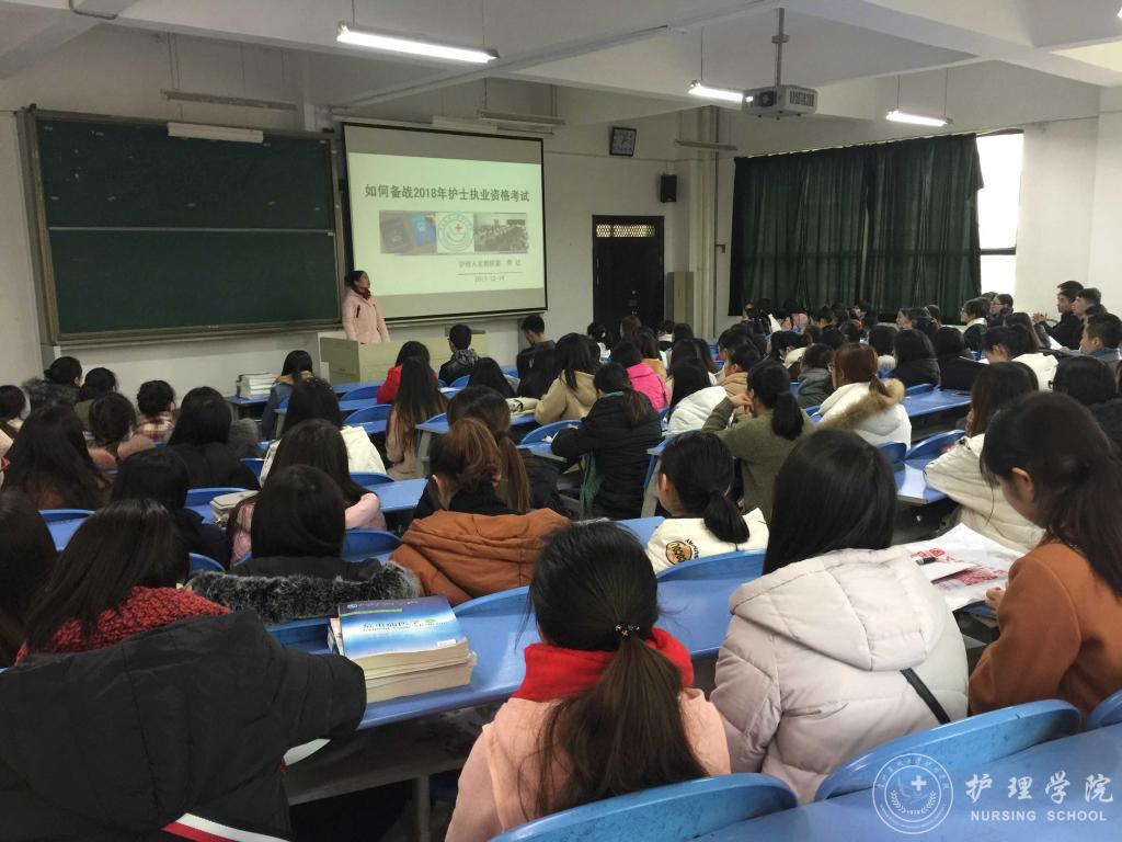 2017年12月14日下午,BEAT365英国官网在北校区2402教室召开了“2018年护士执业资格考试培训会”,本次培训会分为“2018护考题型分析”、“护士执业资格考试报名相关事宜培训”和“实习生恳谈会”三个部分,BEAT365英国官网副院长刘志燕、生产实习科科长柳忠燕、护理学专业教师李红和2014级全体护理实习生参会,会议由学生科科长曾敏主持。