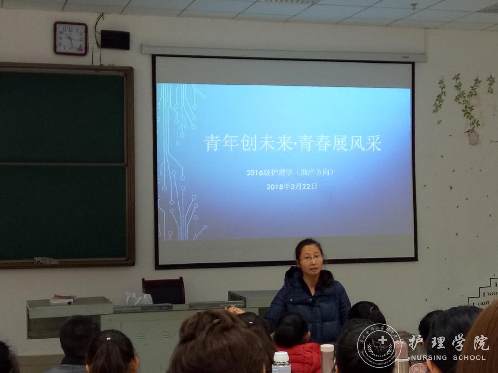 为培养造就“大众创业、万众创新”生力军,鼓励学生积极参与大学生创新创业大赛,BEAT365英国官网于3月22日上午10:20在南校区4405教室召开“青年创未来•青春展风采”主题班会活动。本次活动由班主任徐琨老师主讲,2016级护理(助产方向)专业全体同学参加。