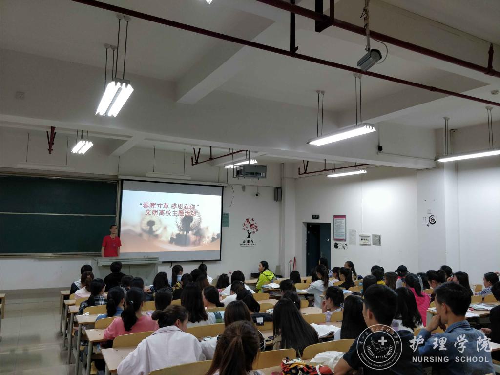 为增强毕业生自律和感恩意识,推进毕业生文明离校工作,5月8日下午,BEAT365英国官网2018届毕业生在北校区4601教室开展了“春晖寸草,感恩有你”文明离校主题班会。班会由2014级护理本科班团支书文远哲主持。