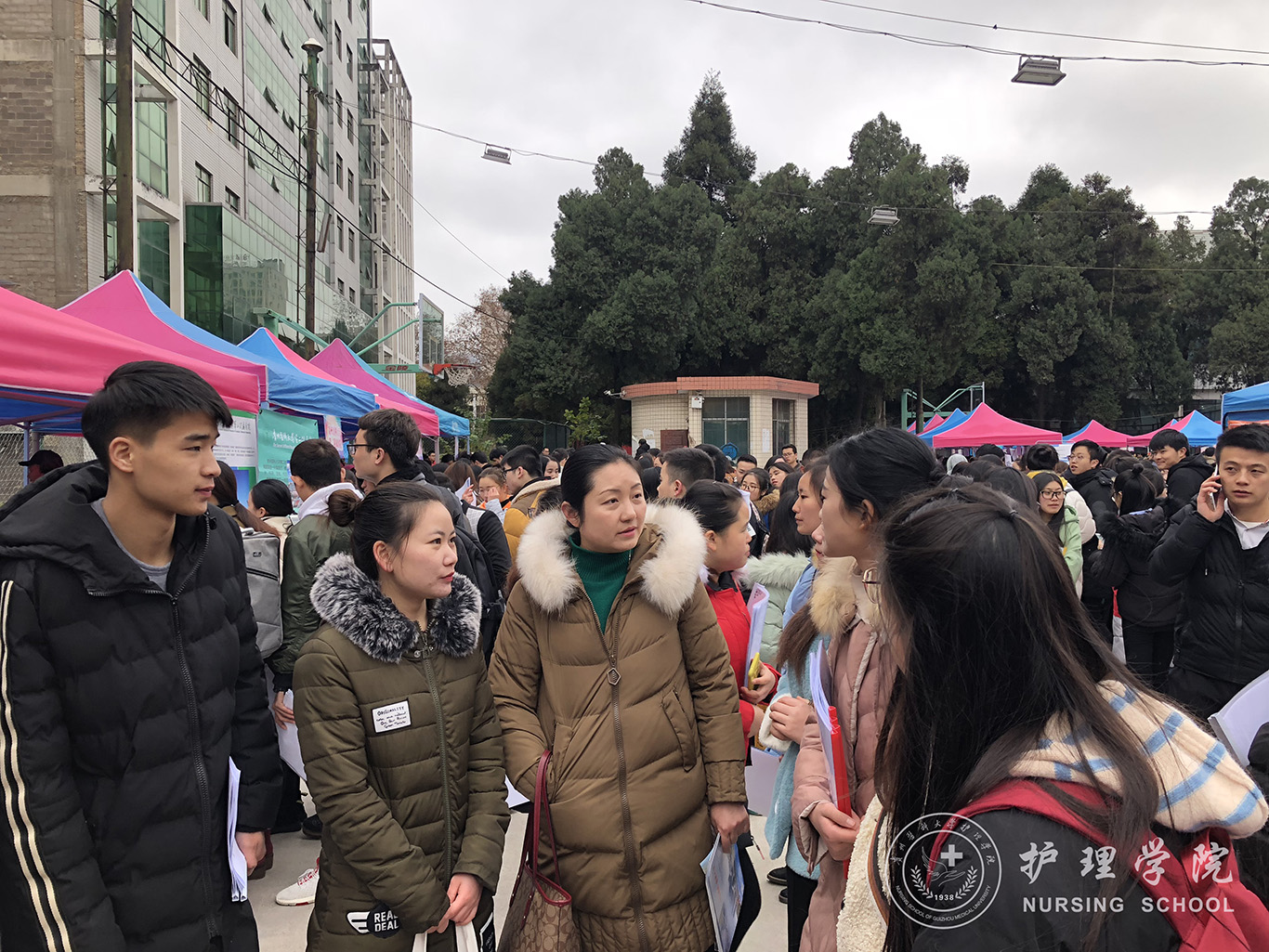 12月7日,冬季大型校园招聘会,吸引了中山大学附属第八医院、深圳市龙岗区妇幼保健院、湖南南华大学附属南华医院、贵州省肿瘤医院、习水县妇幼保健院等用人单位前来招聘。学院详细了解用人单位招聘护理岗位的需求,鼓励毕业生积极把握就业机会,坚持“先就业、后择业”的原则,力争顺利签约。同学们积极递交个人简历并参加面试。本次招聘会进一步为毕业生拓宽了就业渠道,为我院就业工作的稳步开展奠定了基础。