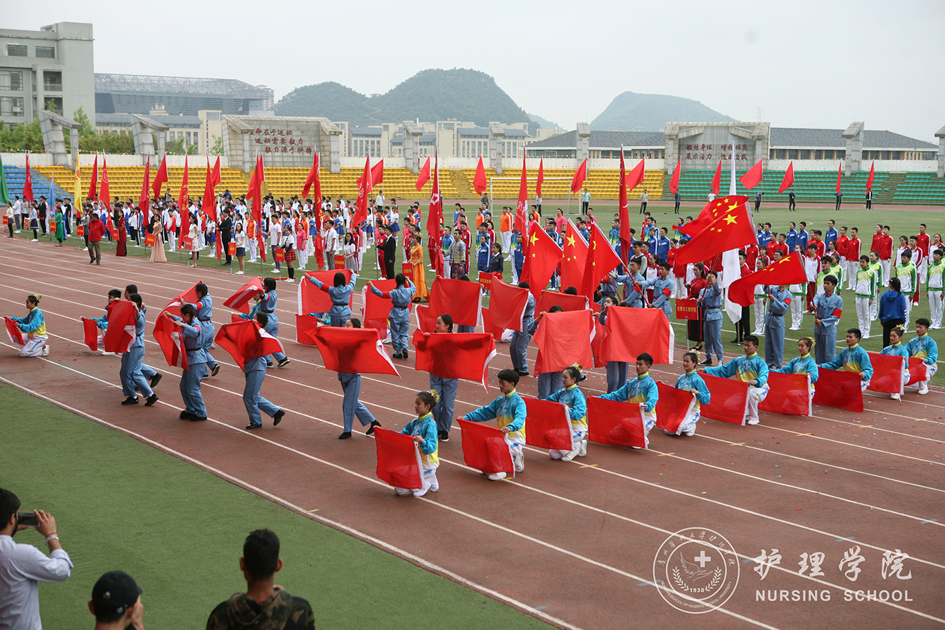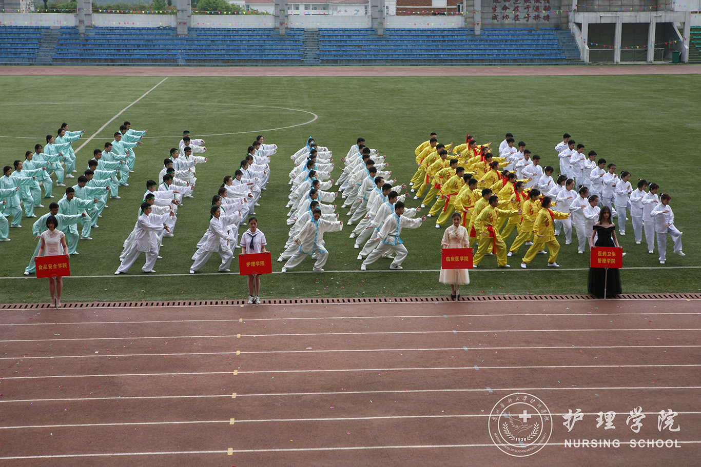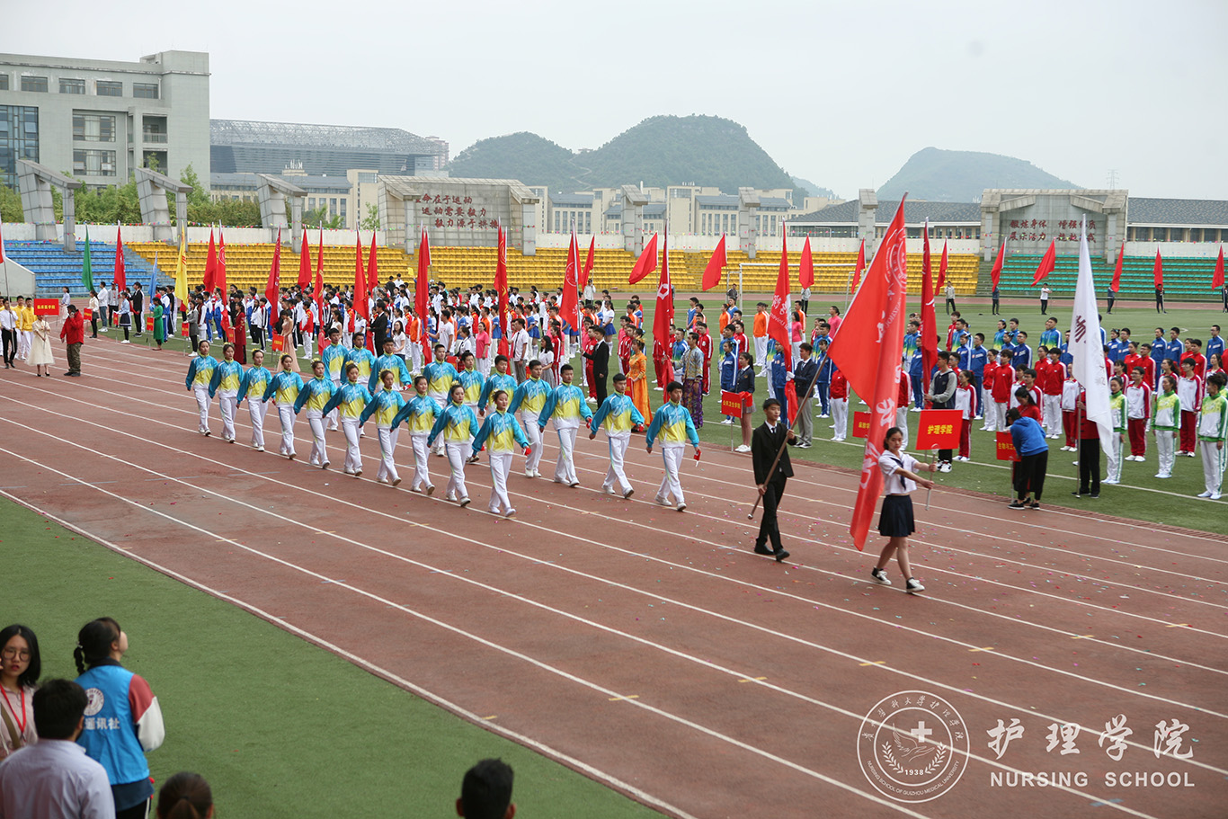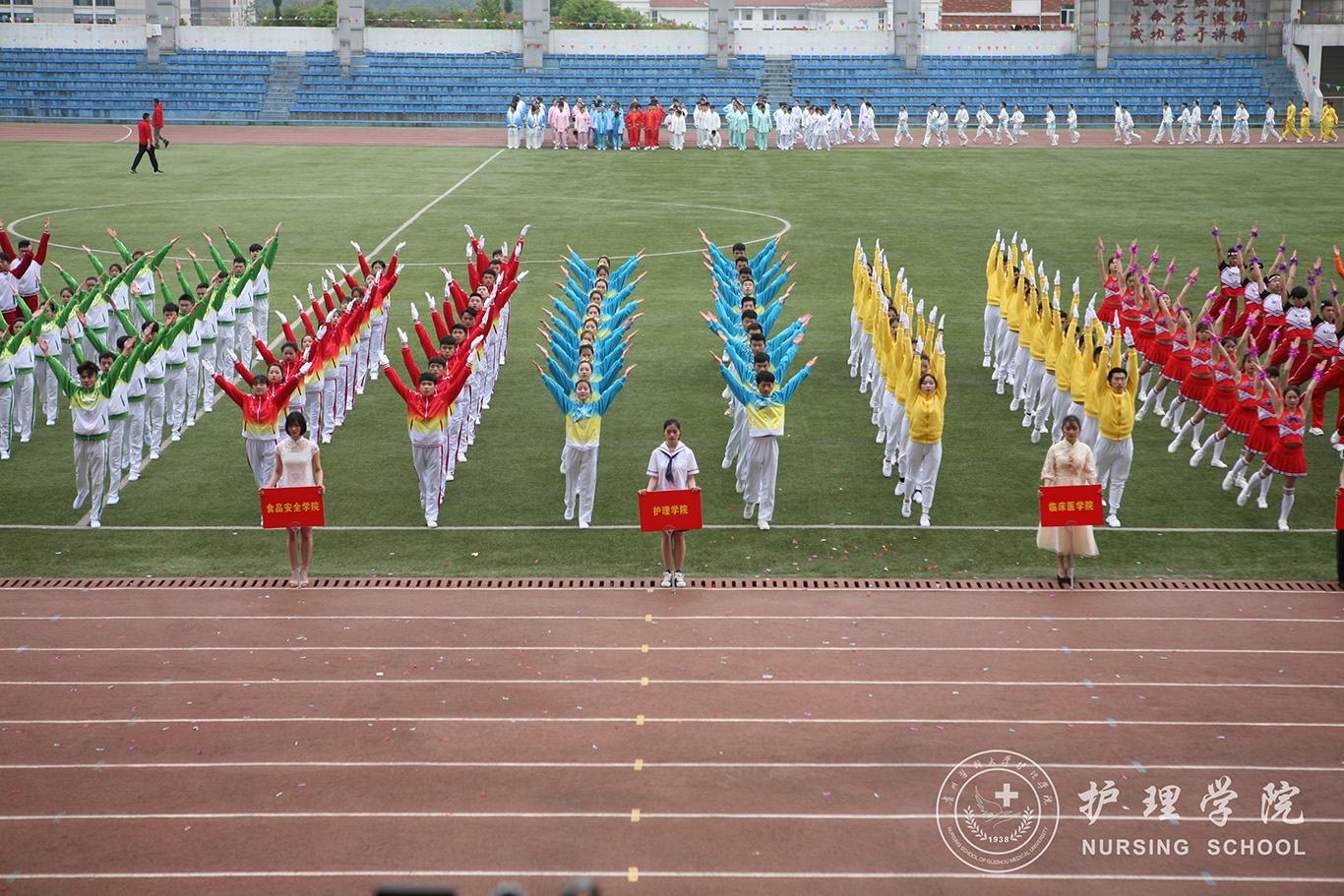 在开幕式中,我院广播操表演方队步伐整齐划一,走出了对赛场的雄心壮志、走出了所有护理学子的共同期待。