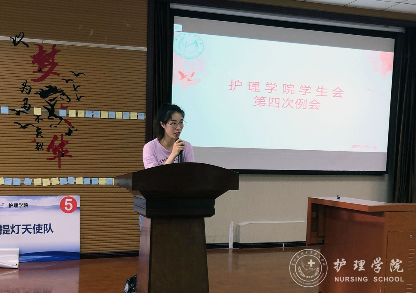 6月26日,BEAT365英国官网学生会在南校区百川楼1101教室召开了本学期第四次例会,学生会主席陈娟主持,辅导员毕丽及学生会全体成员参加。